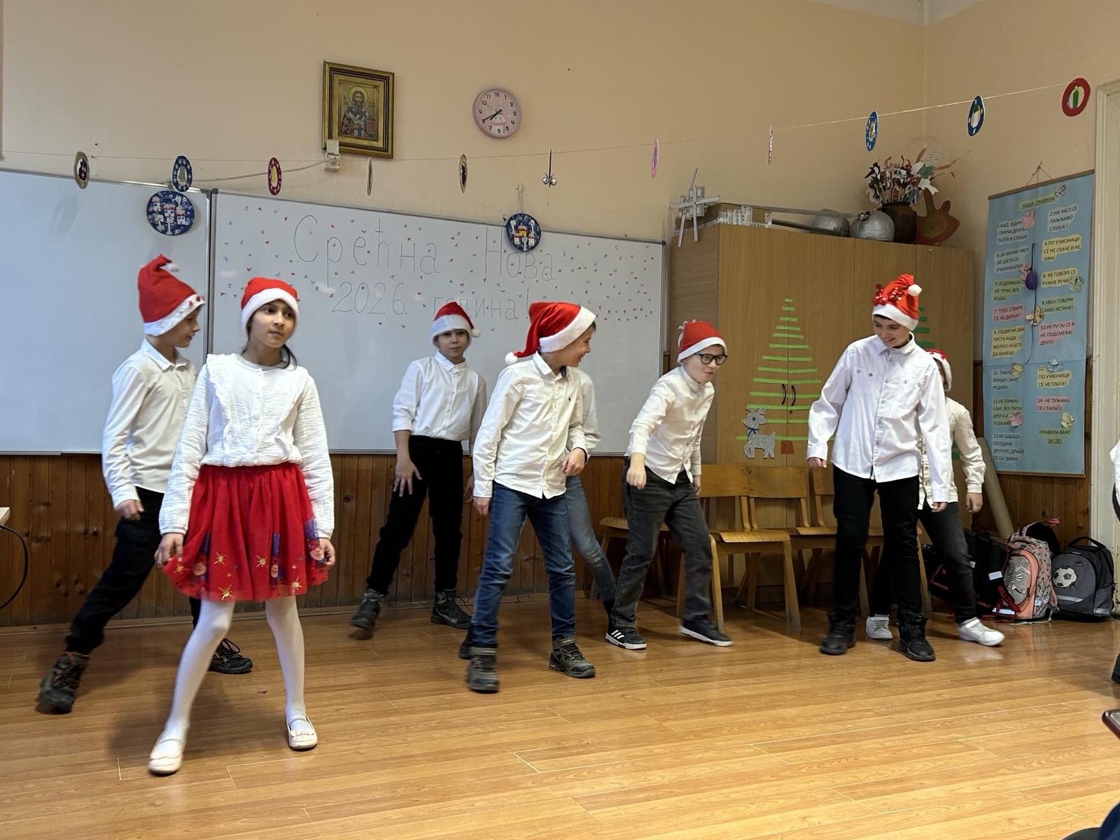 … падајте, падајте снежније и беље Деда Мраз нам стиже на весеље … и било је весело ових дана у нашој школи. Погледајте на фотографијама како је протекла новогодишња приредба, томбола и подела новогодишњих честитки. Као и сваке године, ученици осмог разреда су поделили честитке са најлепшим жељама. Хвала свима који су учествовали и допринели да креативност, добро расположење, атмосфера другарства и даривања красе нашу школу!