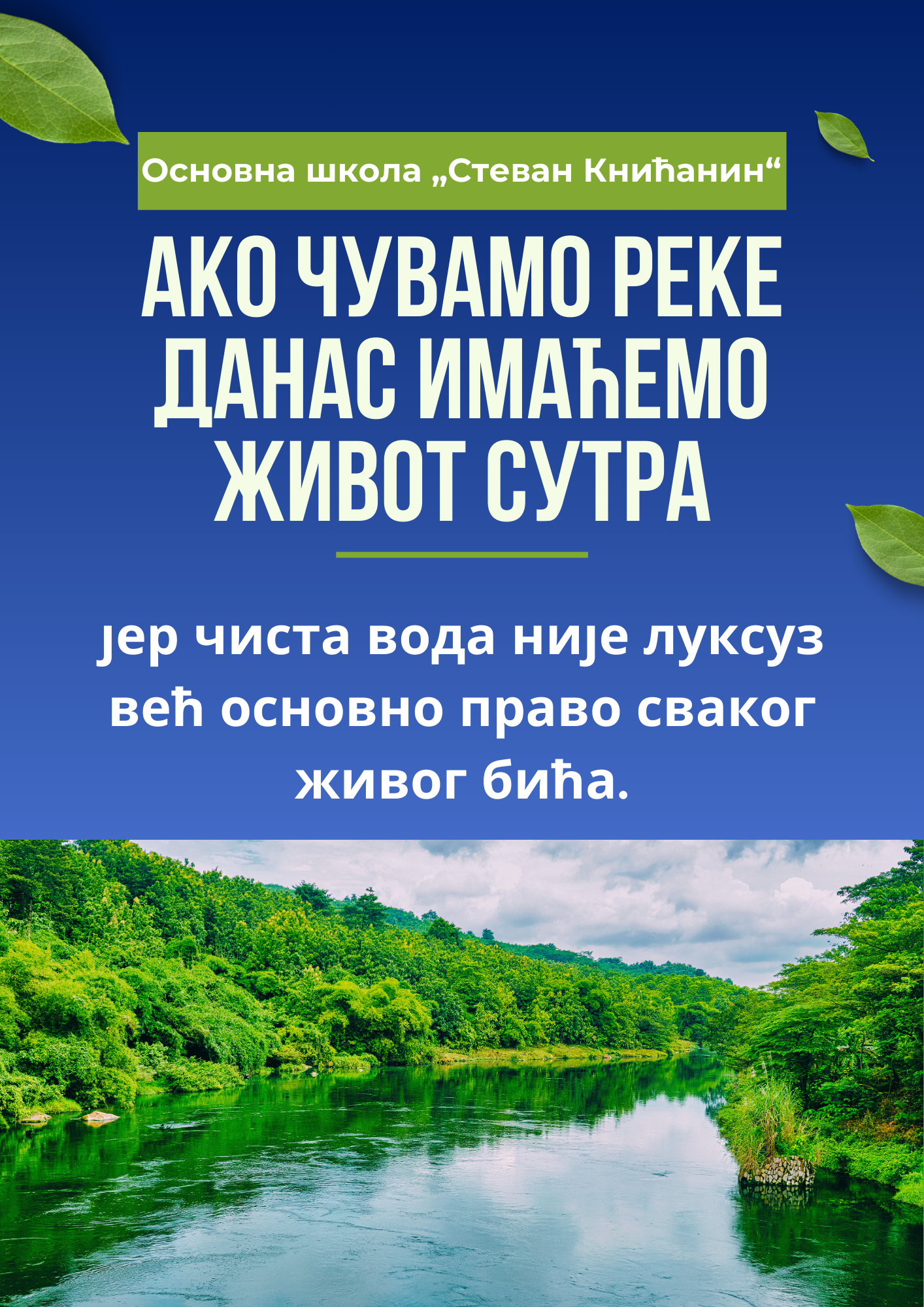 У оквиру поројекта „За чистије и зеленије школе“ у месецу марту је у нашој школи организован низ активности да би се скренула важност и пажња на очување река и вода. Село Книћанин се налази на спецфичној и лепој локацији у природи, окружен са три реке. У непосредној близини Книћанина, Бегеј се улива у Тису, а Тиса се улива у Дунав. Из тог разлога смо одабрали да обележимо Међународни дан река 14. март и Светски дан вода 22. март.