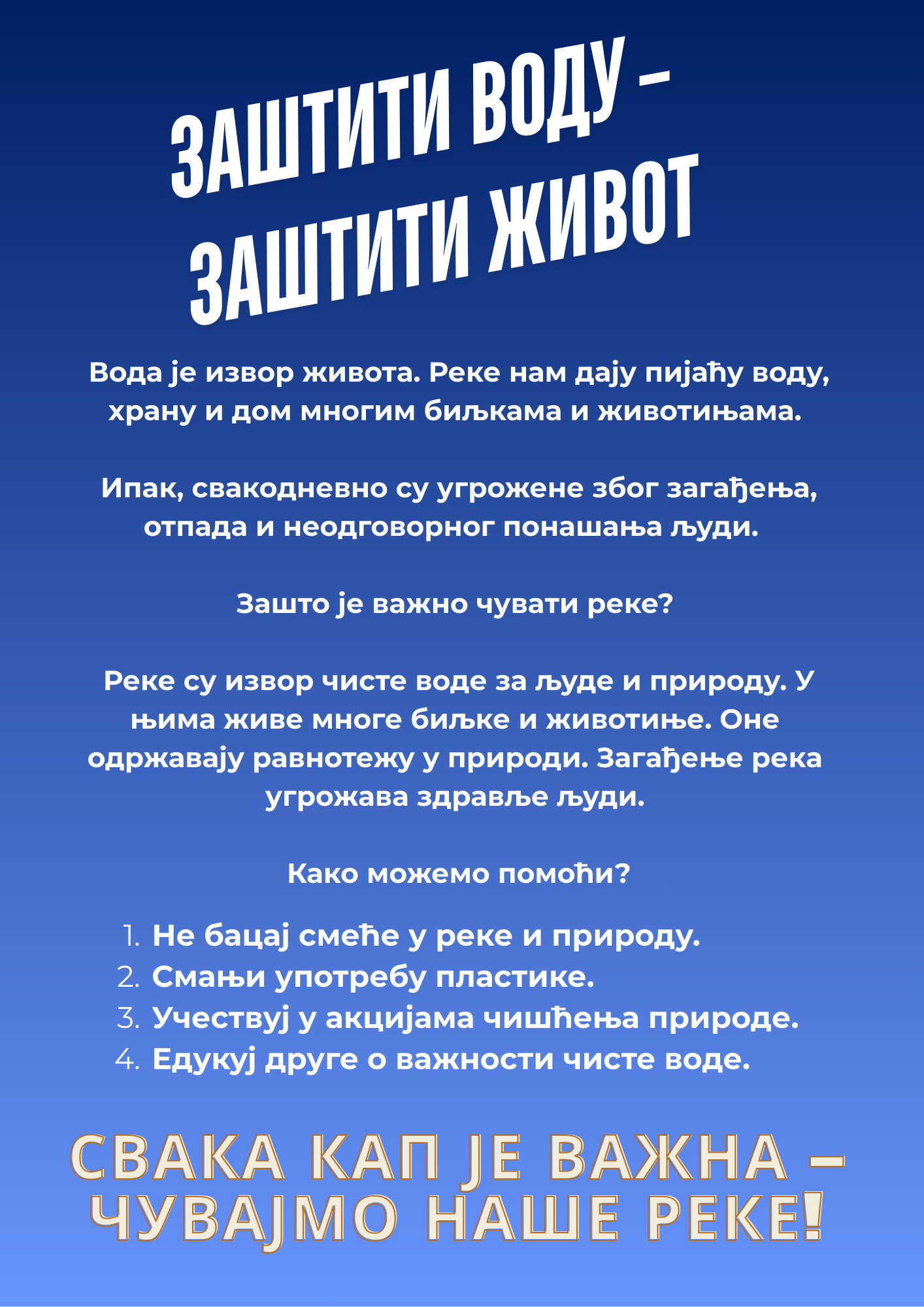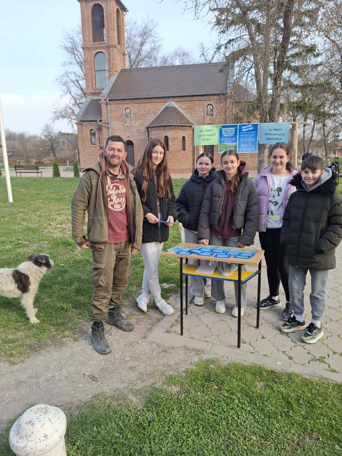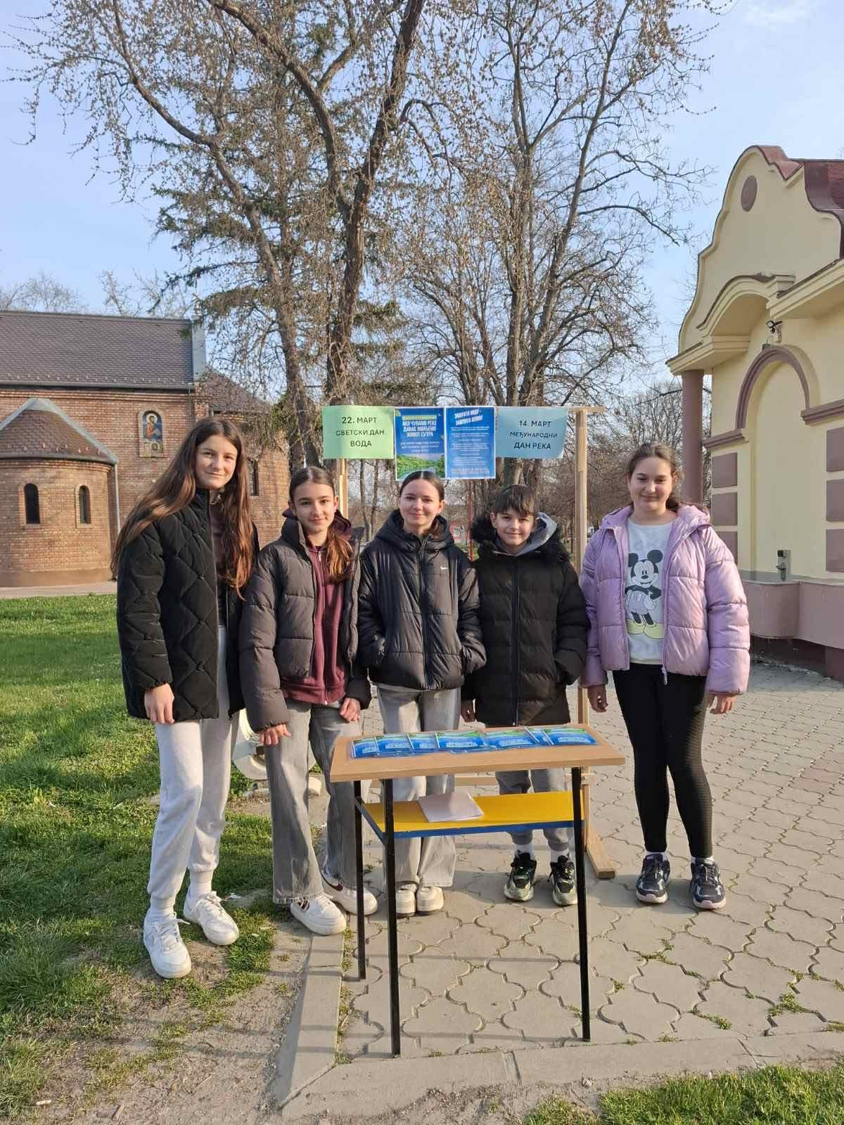 У близини сеоске пијаце је постављен штанд на ком су ученици разговарали са суграђанима о важности очувања река и подели су том приликом и припремљене флајере.