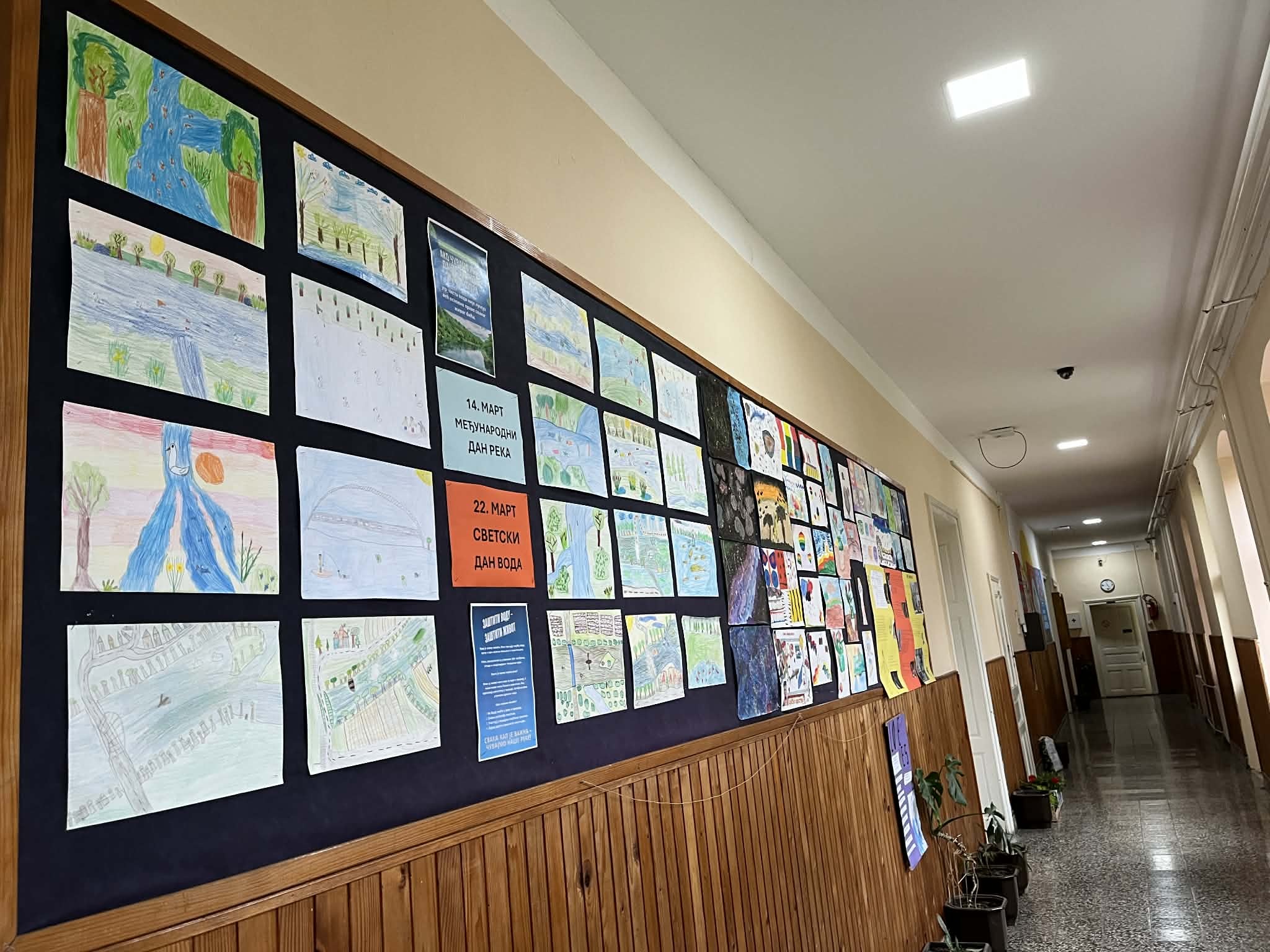 Наставница ликовног и ученици су уредили пано у холу школе.